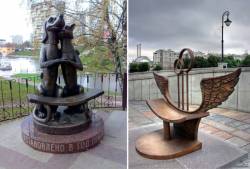 Арт-объектом может стать всё что угодно. Главное, чтобы это было выполнено со вкусом, оригинально и красиво, и вызывало эмоциональную реакцию. Одним из воплощений креативных идей стали..скамейки. Они есть чуть-ли не в каждом российском городе, в том числе и в Кузбассе. Одна из них появилась и в Юрге, перед ЗАГСом на улице Машиностроителей. Это "скамья примирения", выполненная из дерева и кованного прутка. Предполагается, что два сидящих на ней человека, непременно "съедутся" друг к другу, так как поверхность скамейки вогнутая. И как знать, может и помирятся после этого те, кто в ссоре. На фото: варианты скамеек в других городах