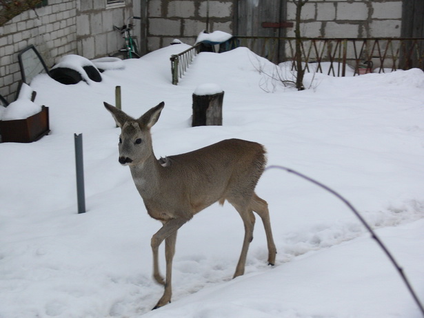 11 января сотрудники офисного здания на Кузнецком проспекте (на пересечении с Советским проспектом), вернувшись на работу после многодневных праздников, обнаружили, и тем самым спугнули, молодую косулю. Судя по следам на снегу, случайно забредшее в город животное, пробыло здесь около трех дней. Уже через 40 минут после звонка в департамент по охране животного мира, специалисты департамента умело и бережно поймали пугливого грациозного олененка рыболовной сетью, вывезли за город и отпустили на волю. Что привело лесного жителя к людям, неизвестно. Возможно это чувство голода, так как в результате изменчивой погоды, на снегу образуются ледяные корки и добывать пищу становится трудно. | |
